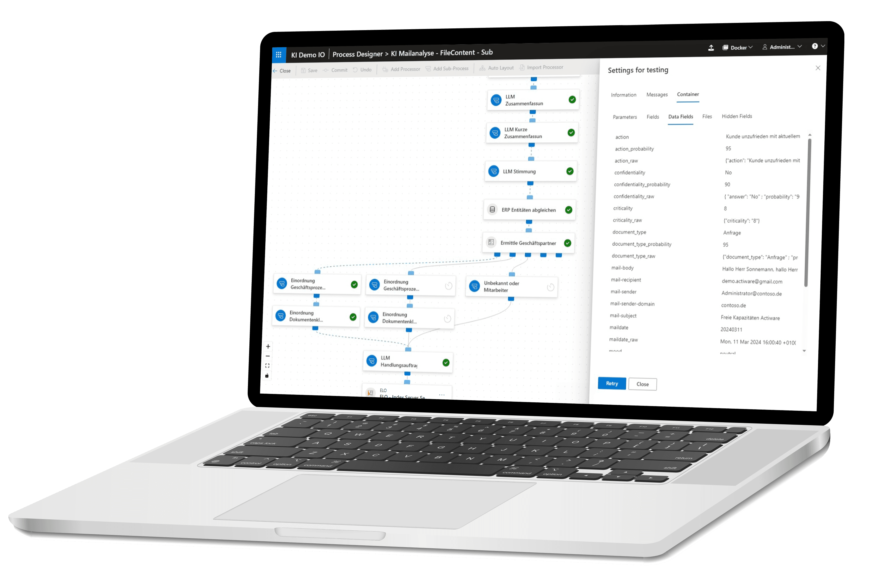 Der ELO Business Logic Provider (ELO BLP) ist eine einzigartige Lösungssuite zur Integration Ihrer Geschäftsanwendungen, sowie Daten- und Dokumentenquellen. Mit ELO BLP entwickeln und modellieren Sie digitale Abläufe – ohne Programmierung – mit reibungslos fließenden Informationen mit perfekt organisierten Daten. Die No-Code Plattform liefert dazu individualisierbare Standardlösungen, fertige Integrationspakete – für mehr als 80 ERP-Systeme und KI Prozessbausteine. ELO BLP ermöglicht Ihnen mit einem offenen Modulbaukasten systemübergreifende Daten- und Dokumentenverarbeitungen – mit ABAS, Microsoft 365, Microsoft Dynamics, SAP S/4HANA, Salesforce und mehr.
